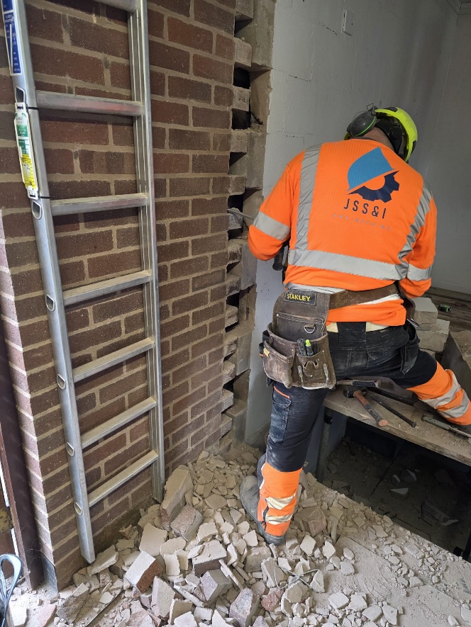 - Removal of brickwork above the existing doorway to accommodate new door installation